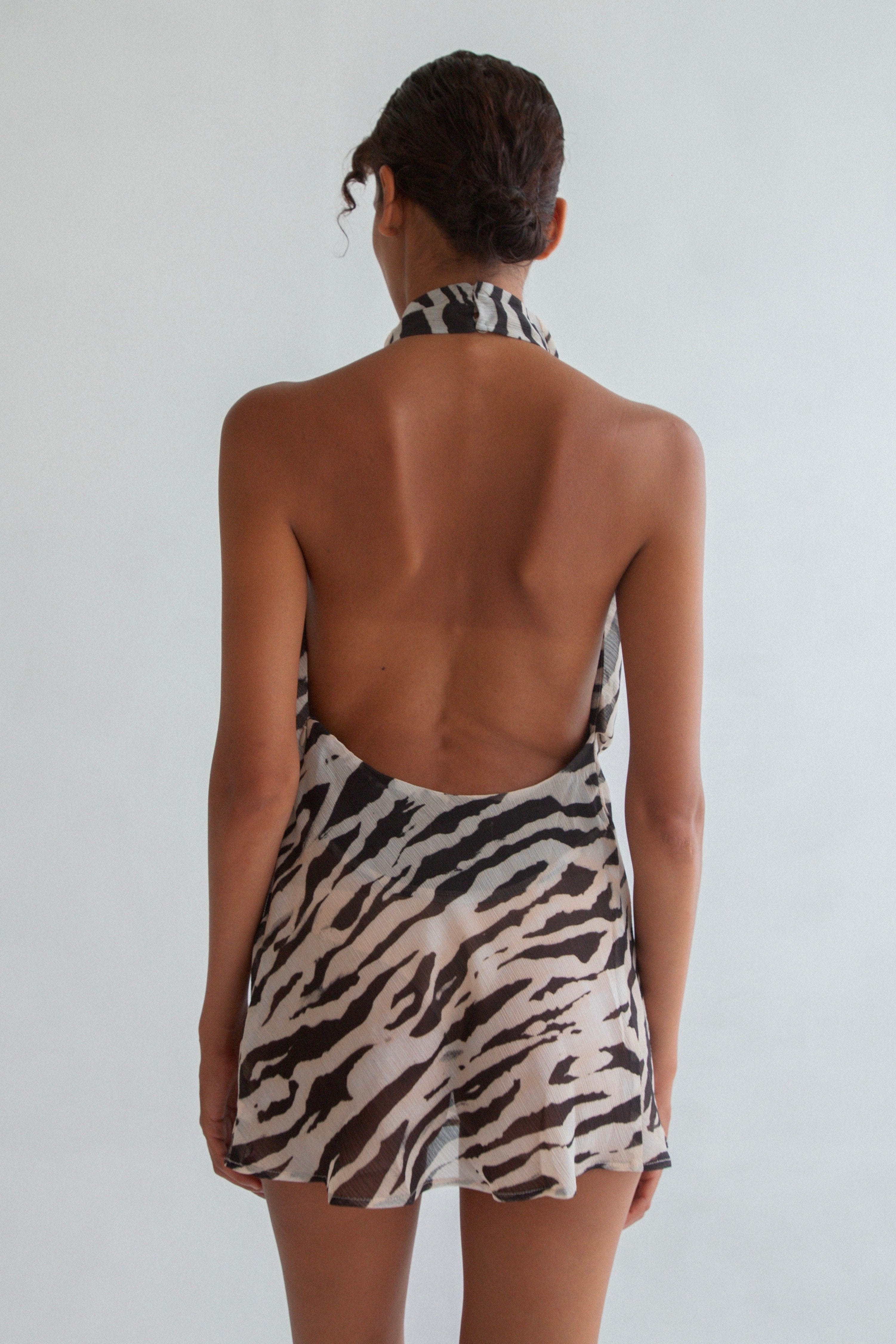 Experience our timeless elegance short dress with back neckline and loose collar who will definitely enhance any body type. This refined short night gown offers comfort and is perfect for the endless summer evenings.